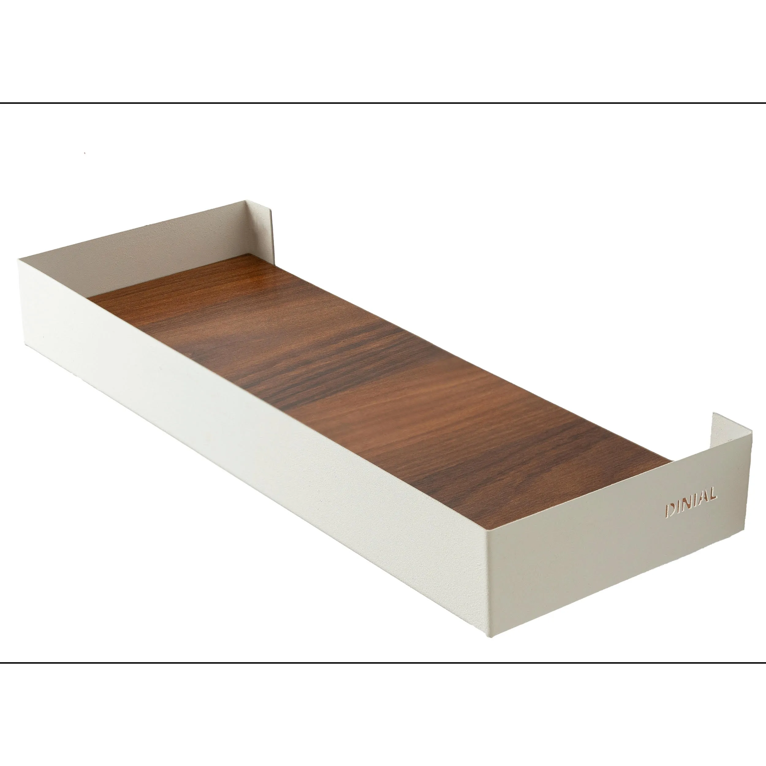 شلف جلو بسته دینیال , یکی از طرح های مدرن و زیبای برند دینیال ساخته شده از چوب ام دی اف با مغز و روکش خارجی , پایه این شلف از فلز با رنگ الکترو استاتیک کوره ای است که همین مورد باعث ضد زنگ و ضد خش شدن پایه شلف می شود , این شلف قابلیت نصب در تمامی محیط ها را دارد , و برای جا ادویه , جا اکسسوری کوچک , جا کلید و ابزار مورد نیاز روزمره , جا لوازم آرایش و … قابل استفاده می باشد . ابعاد این شلف 40*15 سانتی متر می باشد و نصب بسیار آسانی دارد